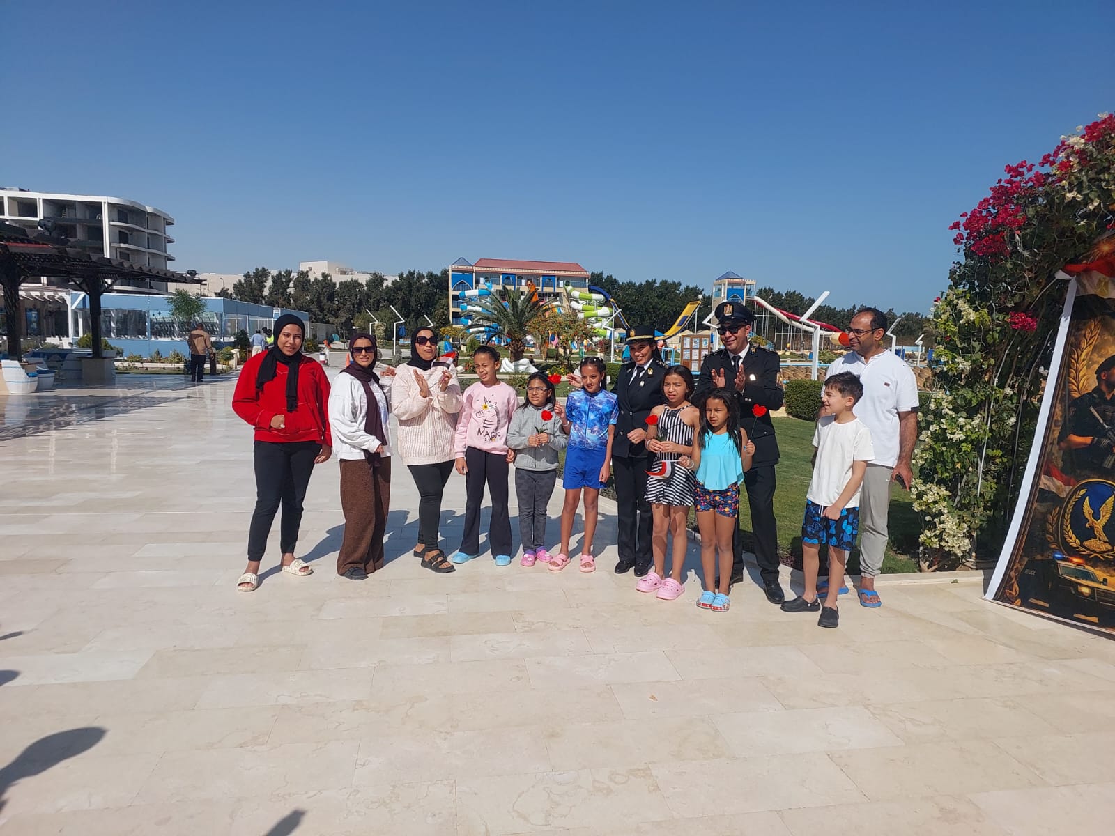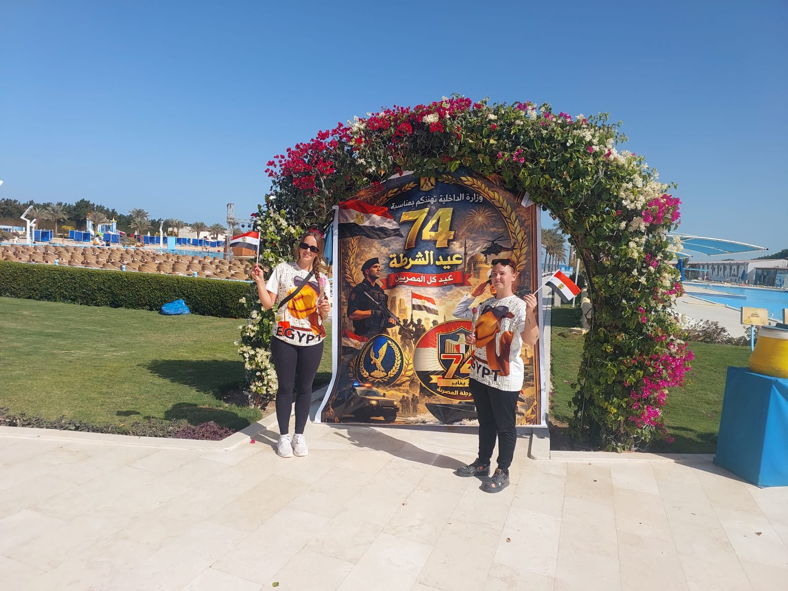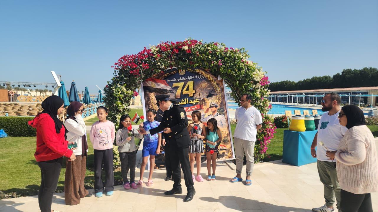 فنادق «جرافيتي» بالغردقة تحتفل بعيد الشرطة بتوزيع الورود والأعلام والشيكولاتة