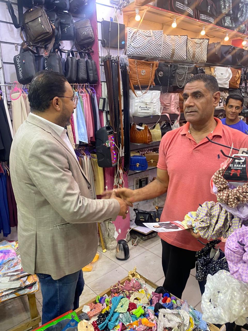 وركز حديثه مع أصحاب المحال التجارية والعاملين بها على التحديات التي تواجه المشروعات الصغيرة والمتوسطة، وسبل دعمهم تشريعيًا لتحسين البيئة الاستثمارية وتحقيق الاستقرار المهني والاقتصادي لهم.