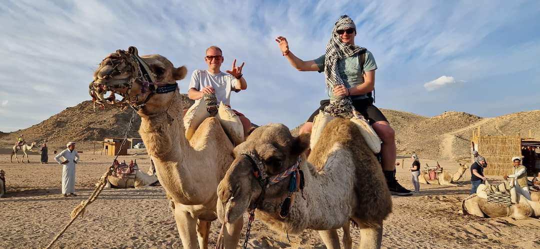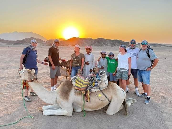 الحرارة تتجاوز ٤٠ درجة في قلب صحراء البحر الاحمر.. سياح أوروبا القادمون من بلادهم الباردة يتحدّون حرارة الصيف ويكتشفون سحر الحياة البدوية برحلات السفاري بالغردقة