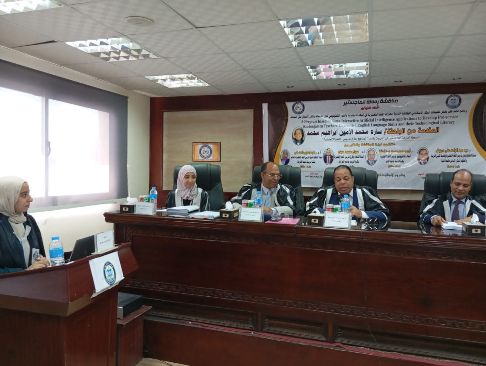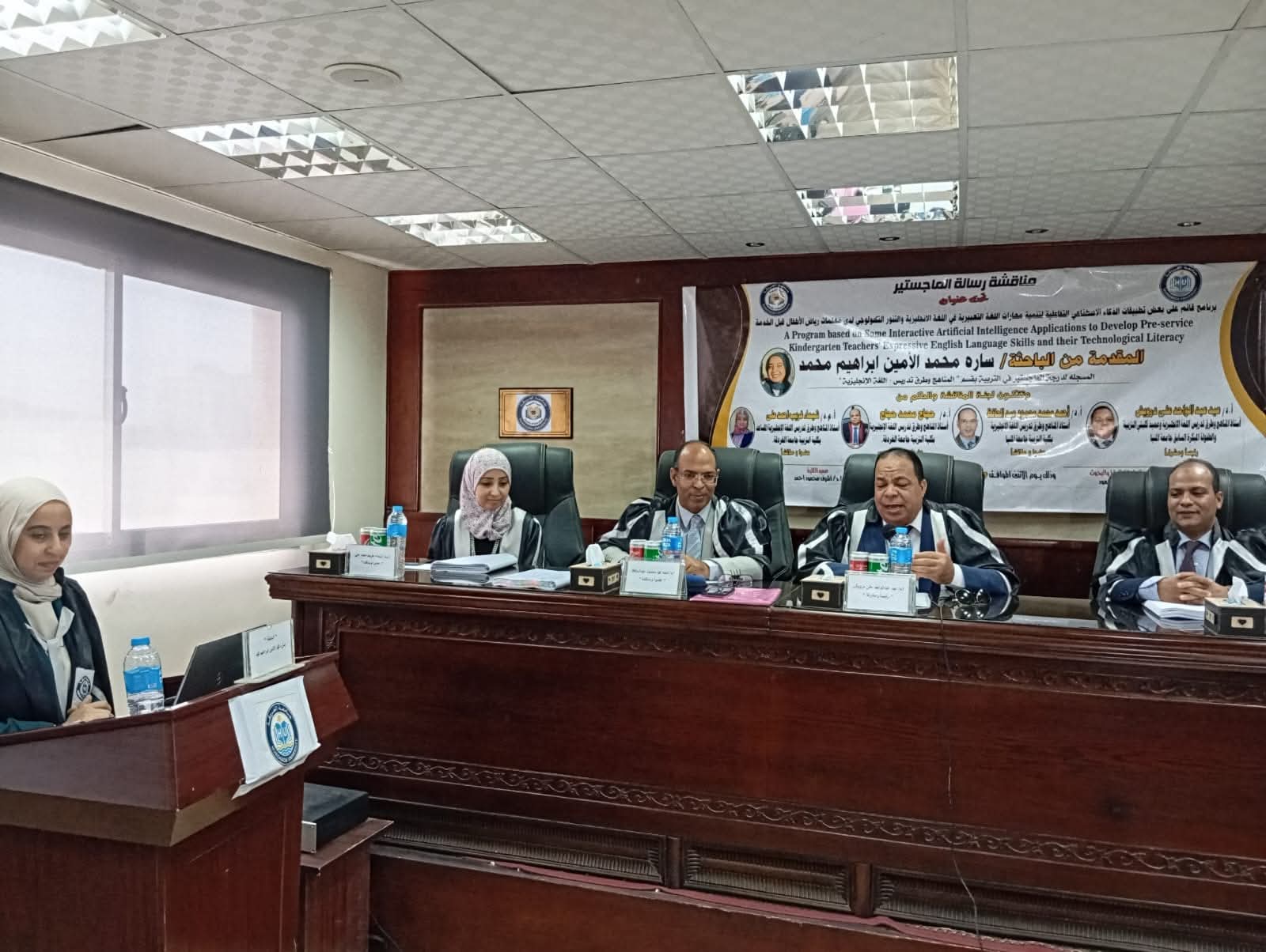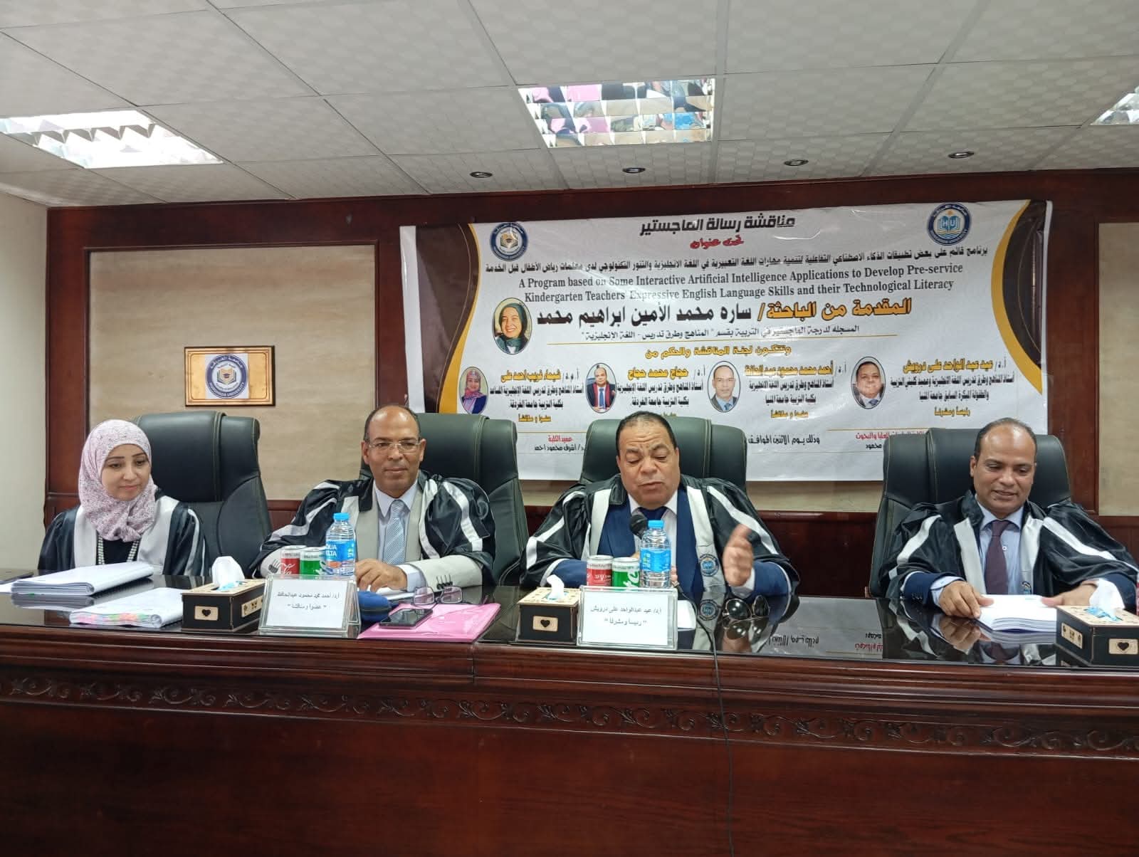 واستمرت فعاليات المناقشة من الساعة الواحدة ظهرًا حتى الثالثة عصرًا بقاعة المناقشات بكلية التربية، حيث انتهت اللجنة إلى منح الباحثة درجة الماجستير في التخصص بتقدير ممتاز.