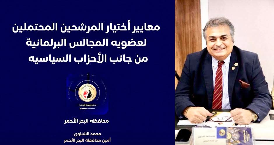 وأكد الشناوي أن عملية الاختيار ليست مجرد ترشيح أسماء بقدر ما هي مسؤولية وطنية كبرى، تهدف إلى إيصال من يستطيع أن يعبر عن صوت المواطن بصدق، ويدافع عن قضاياه، ويشارك في صنع مستقبل أفضل للوطن.