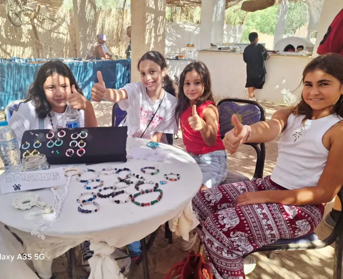 في أجواء إنسانية وحافلة بالأنشطة، لفتت أصغر المشاركات الأنظار داخل المعرض الخيري الذي أقيم باحدي مزارع استضافة الحيوانات الاليفة بمدينة الغردقة لصالح رعاية القطط والكلاب الضالة، حيث شاركت كل من٤ فتيات صغار هن فريدة وسارة ومايا وفريدة بمجموعة من الأعمال اليدوية المميزة من الخرز والأحجار، التي صممنها بأنفسهن لتكون جزءًا من المعروضات التي يذهب جزء من عائدها إلى دعم مبادرات إنقاذ ورعاية الحيوانات الأليفة.